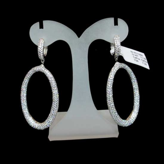Shown here is a pair of fancy earrings made of 18K white gold. The 3.75 carats diamonds dazzle the classic round earrings for added glamor. This pair of white gold earrings is sure to showcase your distinctive taste.