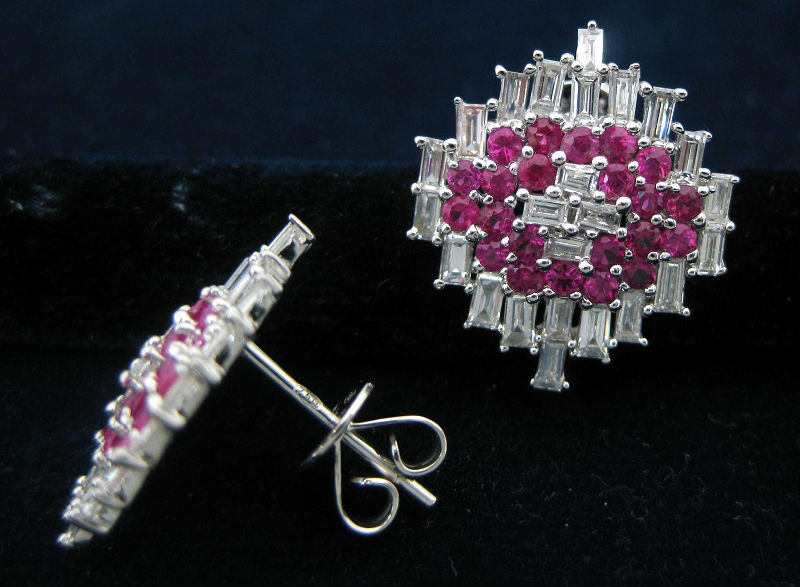 18K WHITE GOLD EARRING / DIAMOND / RUBY