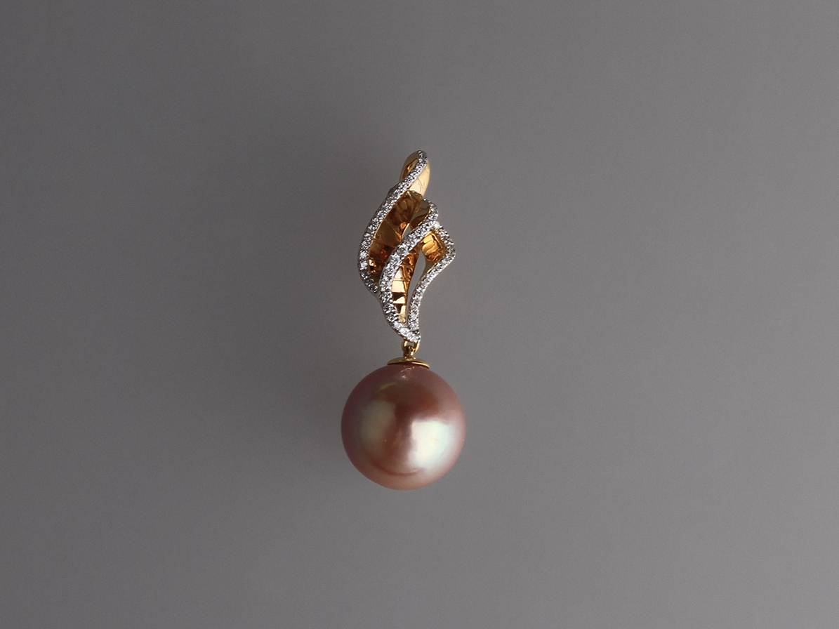 18K YELLOW GOLD PENDANT WITH DIAMOND AND 12-13MM NATURAL COLOR FRESHWATER PEARL
