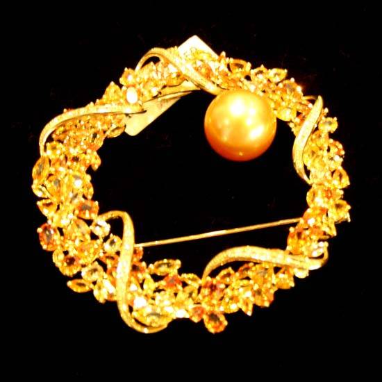 The beautiful bracelet features an intricate foliage design with a golden South Sea pearl. It shimmers with glamour and sophistication in lustrous 18K yellow gold. This gorgeous bracelet makes a perfect jewelry gift for your love.