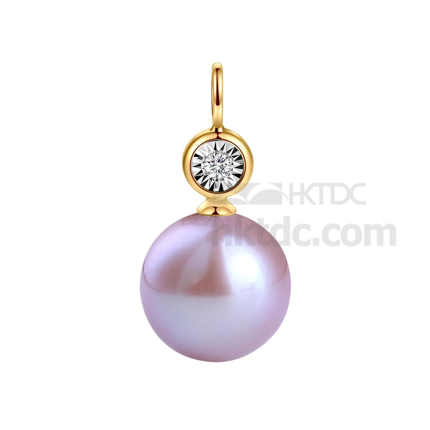 18K Yellow Gold Pendant with Pearl and diamonds