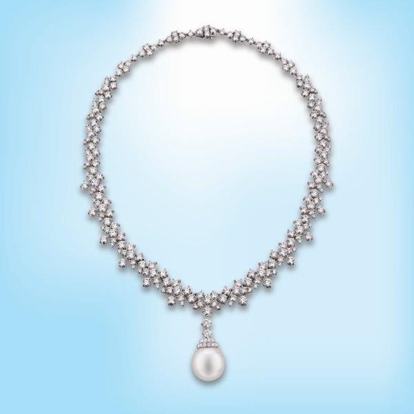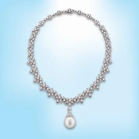 18K fine gold necklace setting with good workmanship and diamond and pearl.