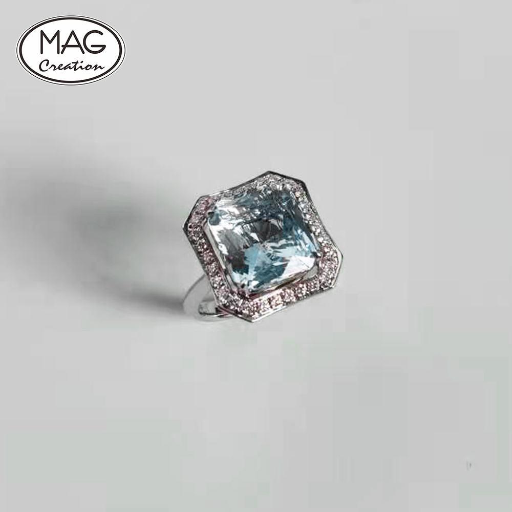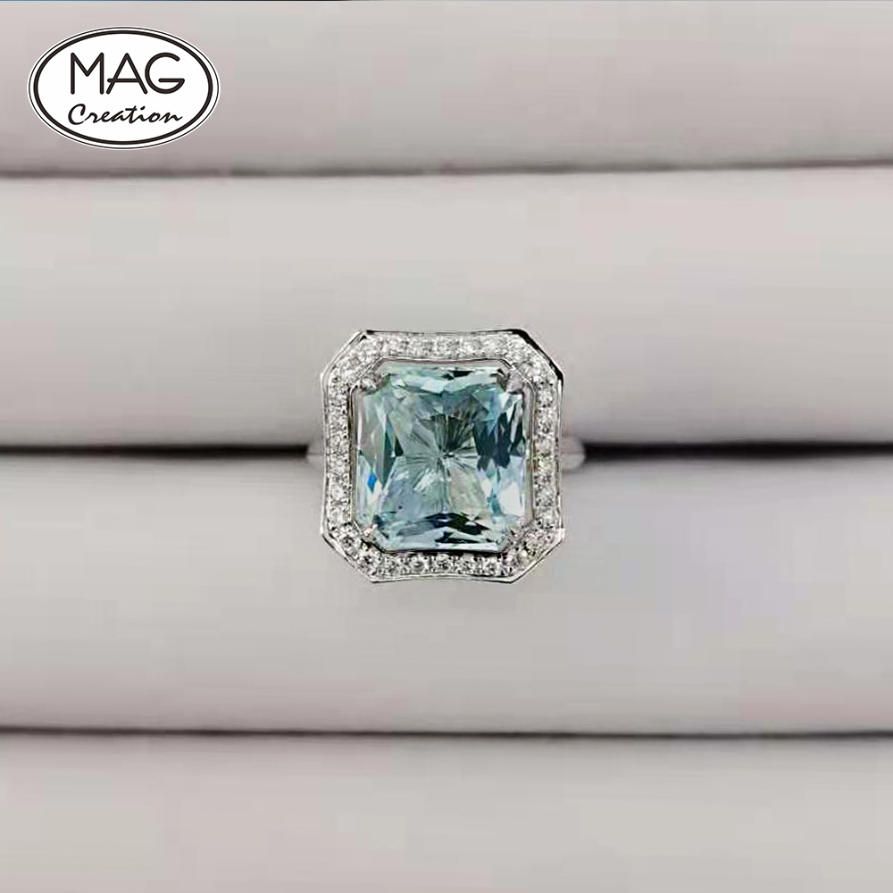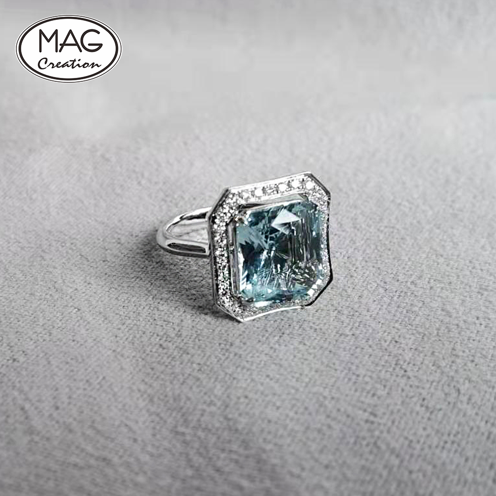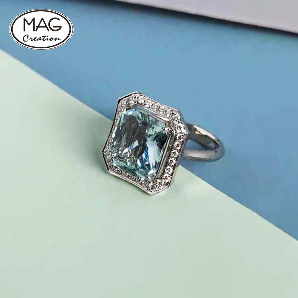 HALO Ring: 18K Gold 4.5ct Radiant Cut Aquamarine inside Diamond HALO