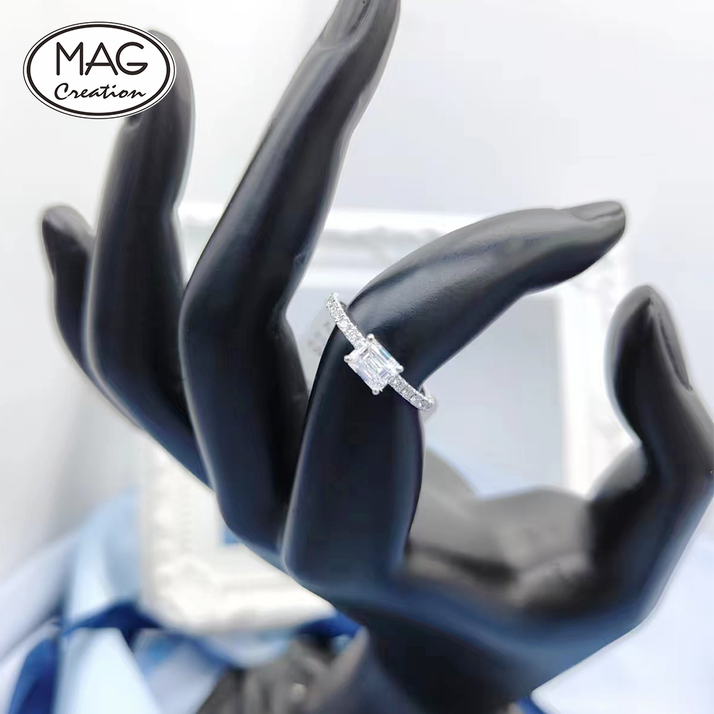 Special Design 18K White Gold Natural Emerald Cut Diamond Ring