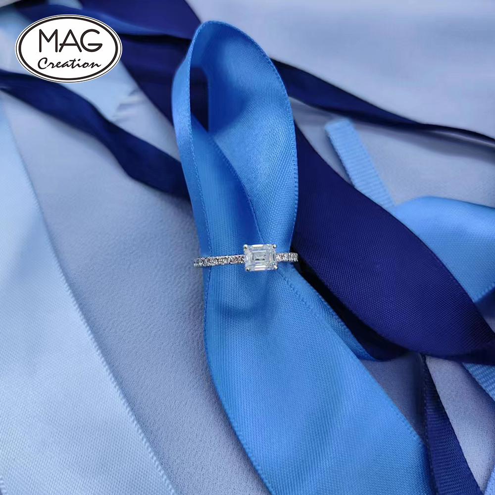18K white gold, 0.72ct natural Emerald Cut Diamond, 0.25ct F VS natural Diamond