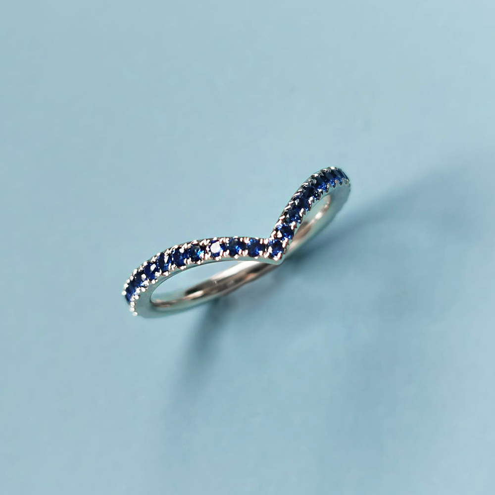 Aquamarine Collection: 18K white gold Single Row Sapphire matching Crown Ring Vivid blue Sapphire 0.46ct