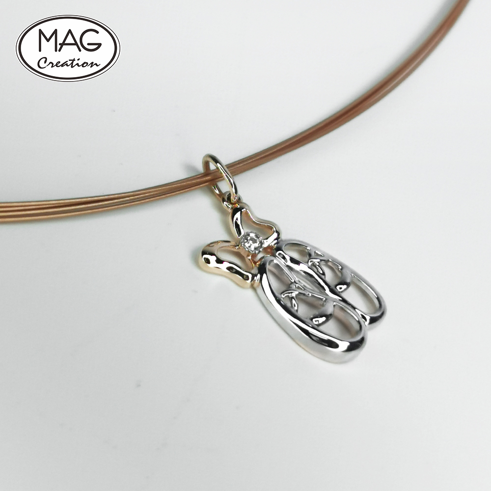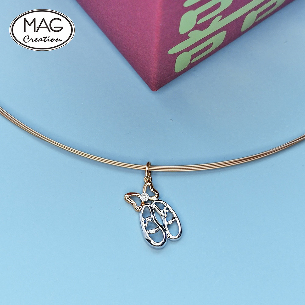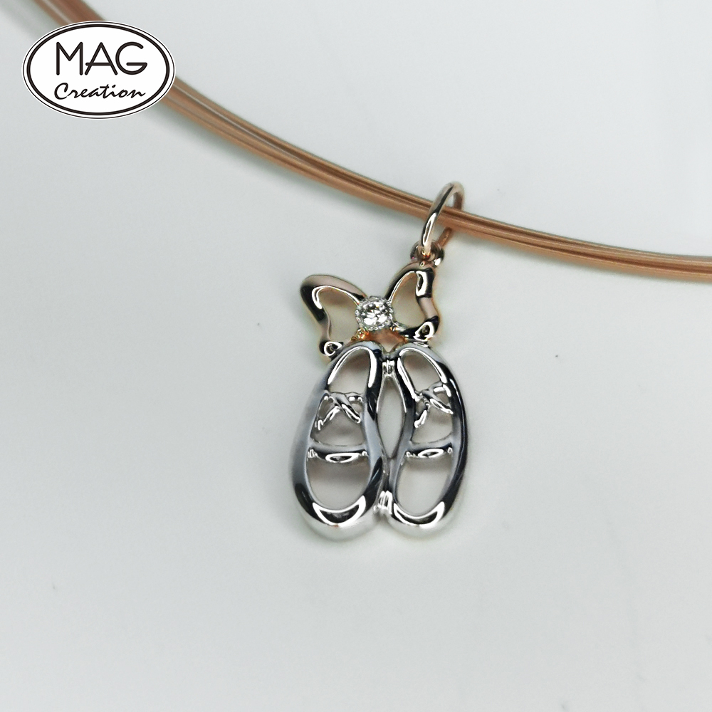 Cute trendy 18K gold natural Diamond Ballet shoes pendant