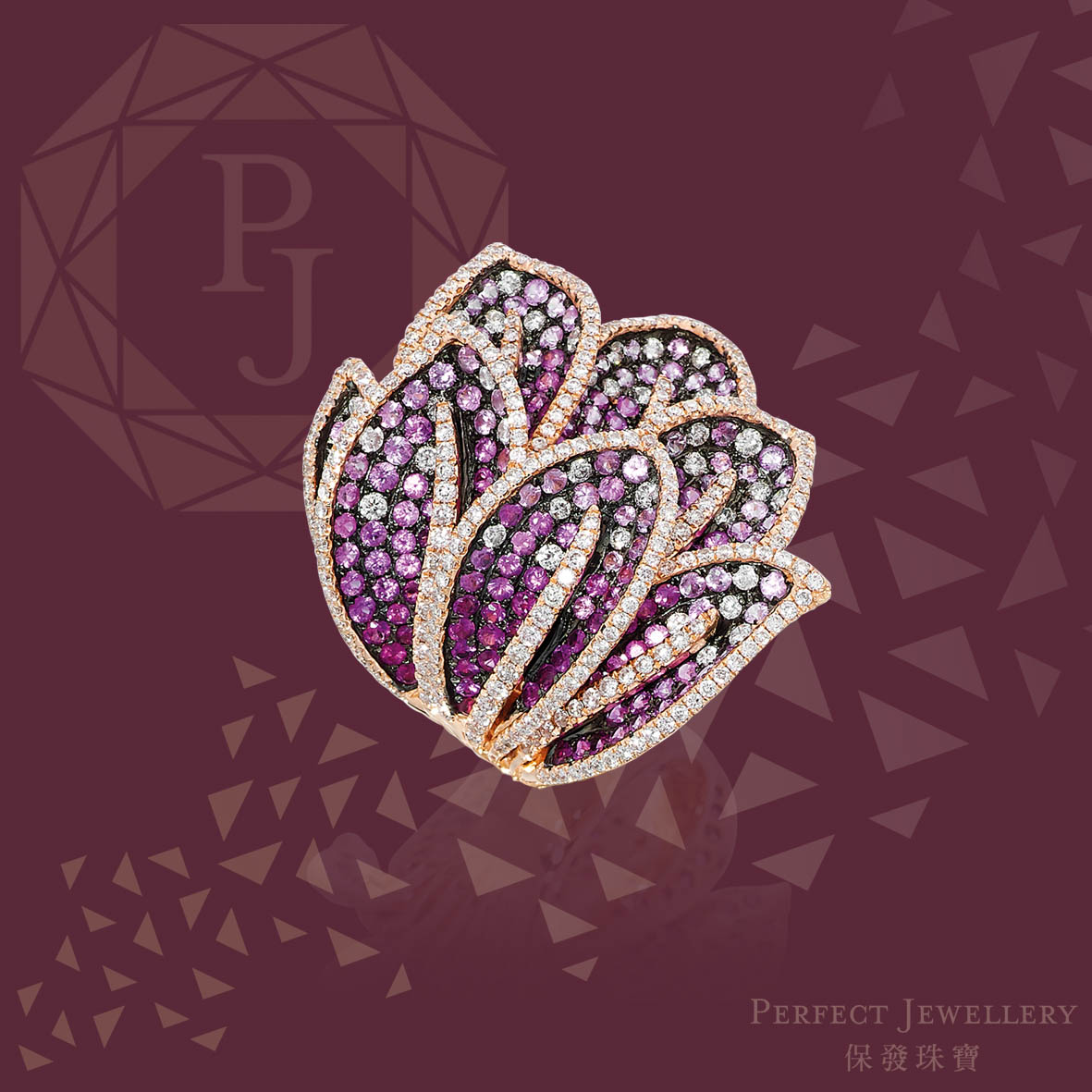 18KP RING WITH DIAMOND AND SAPPHIRE