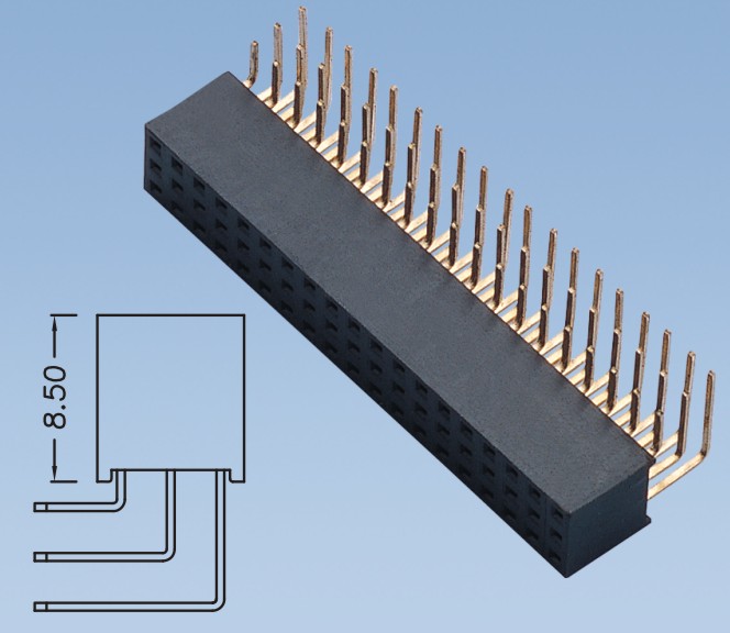 - 2.54mm Female Header - Three Row R/A Type H=8.5