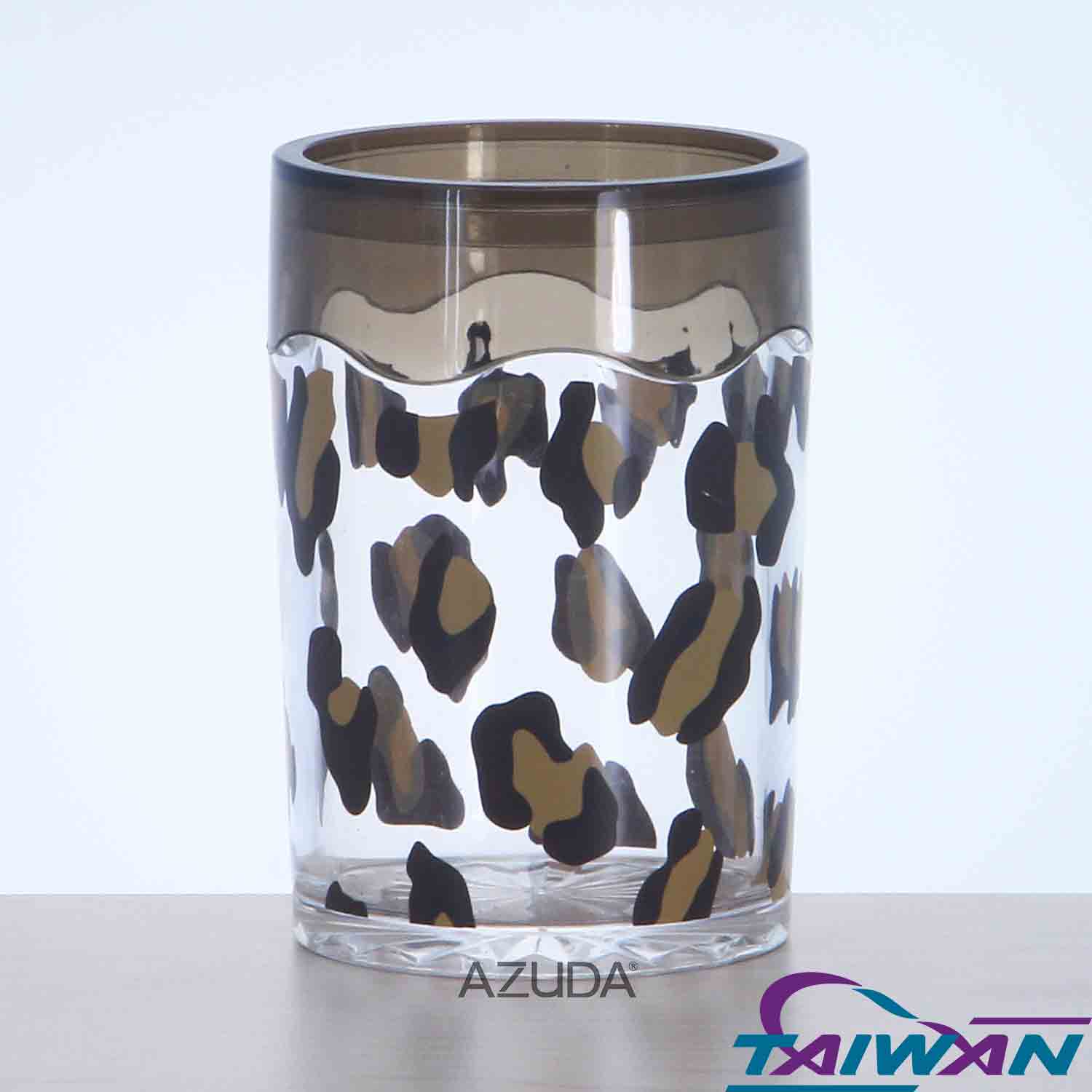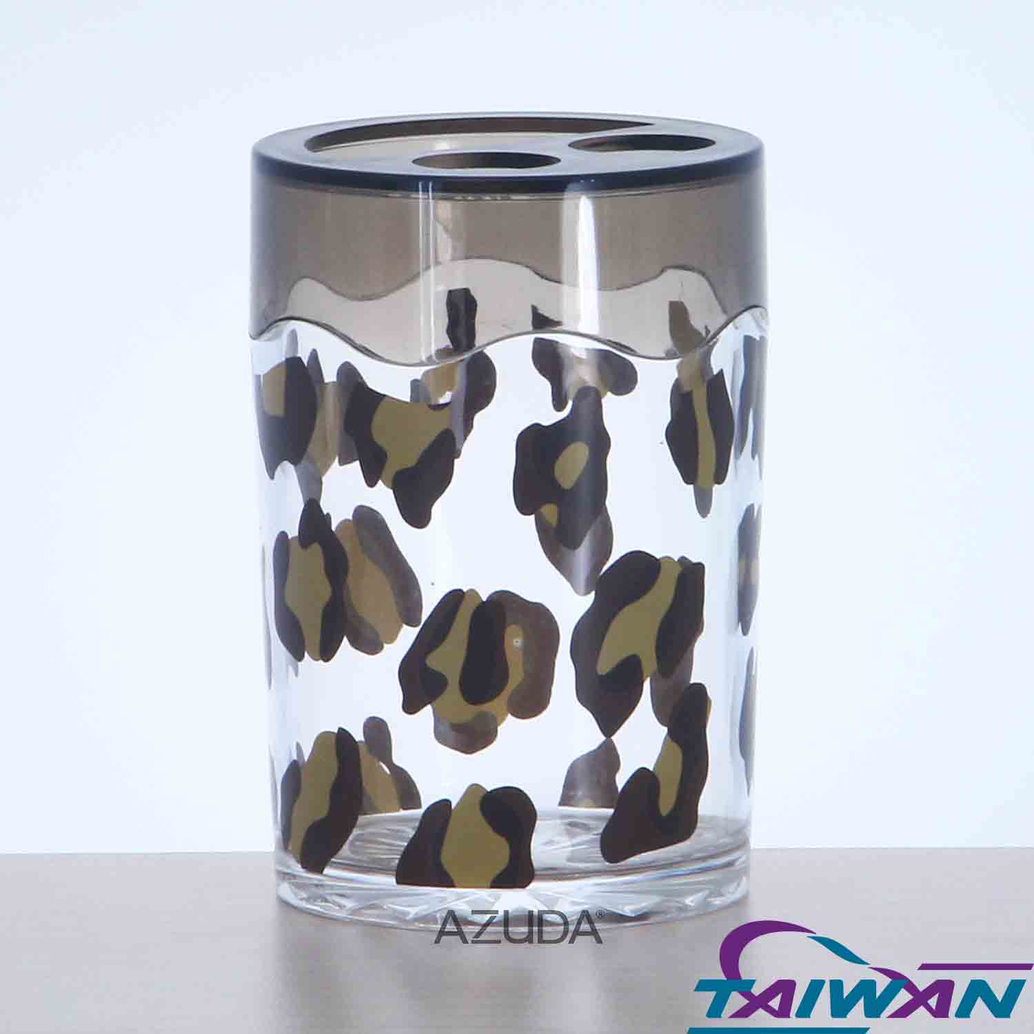 2-TONE ACRYLIC BATHROOM ACCESSORY SET W/LEOPARD DESIGN