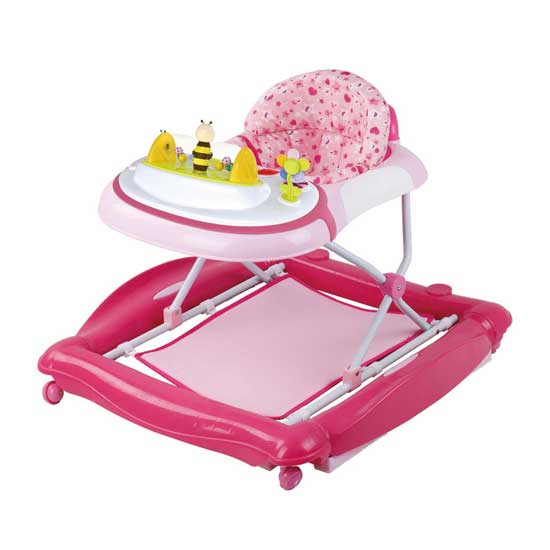 This 2-in-1 baby walker can be converted into a baby rocker. It features a large and stable base fitted with six wheels. The play tray comes with sound, lighting effects and can be easily detached.