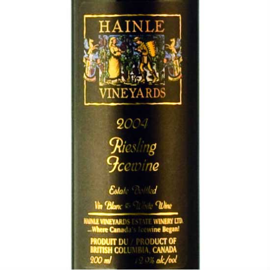 Ice wine or Eiswein is a German tradition, which started about 200 years ago. This presented ice wine is very special from Canada. Hainle Vineyards has a special place in Canada's ice wine history, being the first ice wine producer in North America. The Hainle family made the first ice wine in Canada in 1972, and has made it every year since, with three exceptions, 1998, 1999 and 2002. Ice wine is made from grapes, which are left on the vines until the first deep frost (at least -8°C) of the year. The grapes must be picked, crushed and pressed while still frozen. The grapes, having been left on the vine for longer than the usual harvest, are very sweet. Only the water in the juice freezes, and all that comes out of the press is a very sweet and concentrated juice in a very small volume. Left behind in the press are the skins and a block of ice. In 2004, Riesling grapes were used for our ice wine along with 15% Traminer grapes for added complexity. The grapes were picked on December 12, 2004 in our own Peachland vineyards, at -19 degrees Celsius. No insecticides, herbicides or synthetic fertilizers are used in the vineyard, and the only spray used is elemental sulfur to control powdery mildew and soap to control leafhoppers. The sugar content of the grapes at harvest was 50.0% (grapes for regular table wines are usually picked at between 19 and 22% sugar). The grapes were affected by botrytis or “noble rot”. These grapes yielded enough juice to produce about 250 cases (200ml) of wine. The wine was fermented in glass containers with Saccharomyces Bayanus Champagne yeast, which has high tolerance for sugar and alcohol. No sulfite was added before or during fermentation. The juice was allowed to fully ferment at normal cellar temperatures; fermentation took about 4 months. The 2004 vintage has 105g/l of residual sugar (a 10 on the sweetness scale), and contains 12.9% alcohol. The wine has a golden straw color, aromas of candied sugar and apricots, and a lively acidity (11 g/l). The finish is very long and intense, revealing deeper fruit tones and hints of nuttiness. It is best enjoyed in small servings on its own, or matched with fruits, nuts or cheese-based desserts which are not overwhelmingly sweet. Try it with baked brie with a drizzle of honey glaze or a caramelized nut tarts. This wine has won many international gold medals and is fully certified organic.