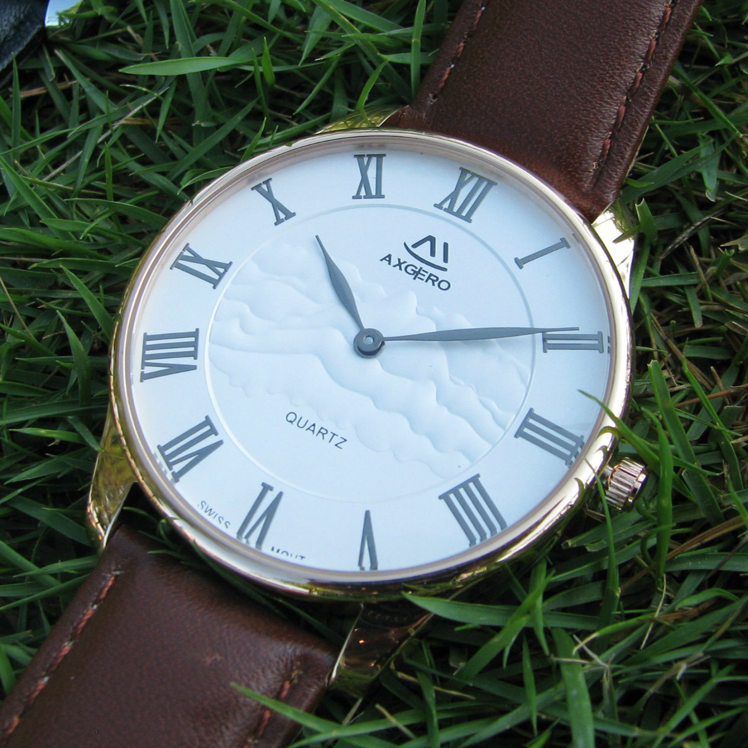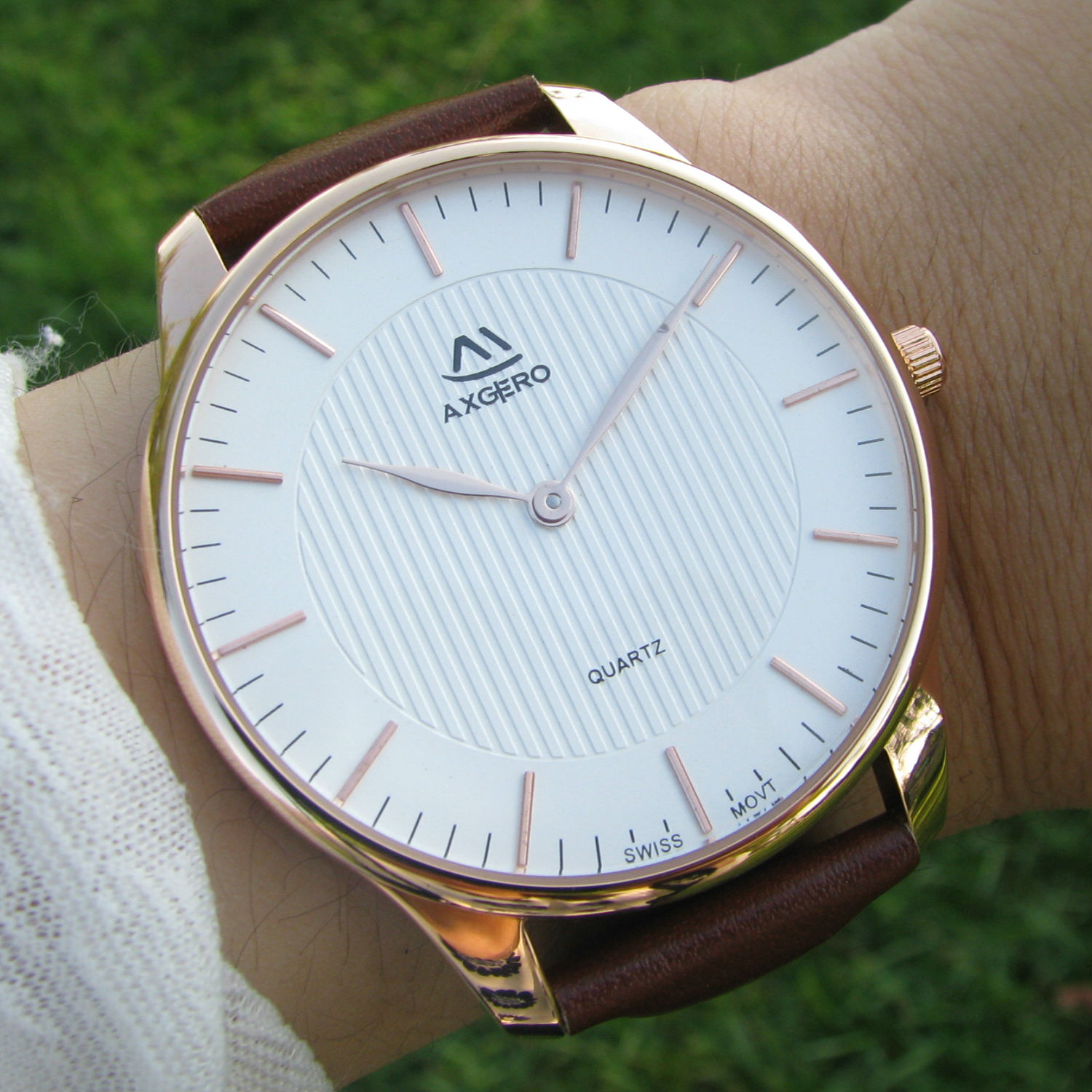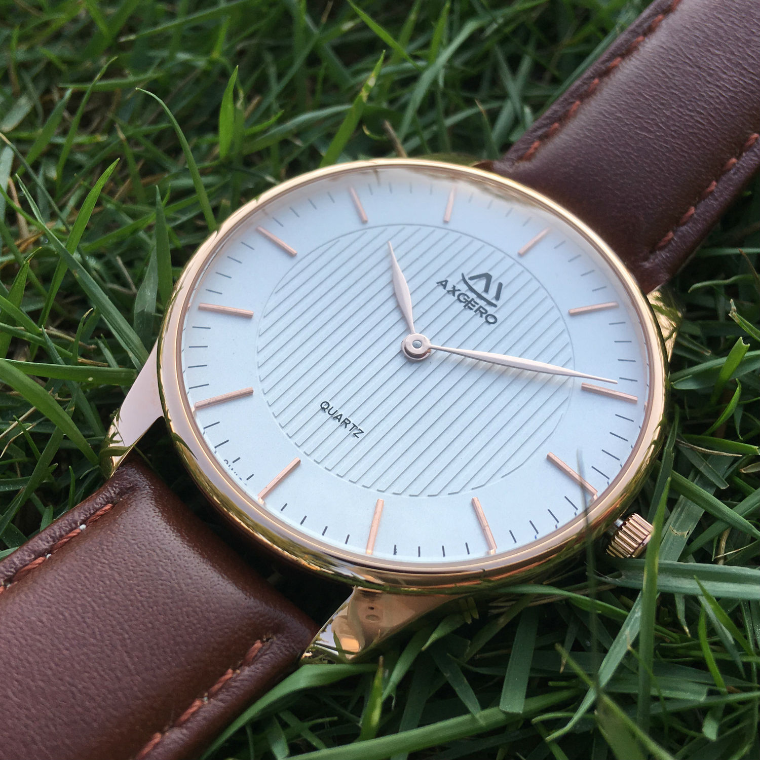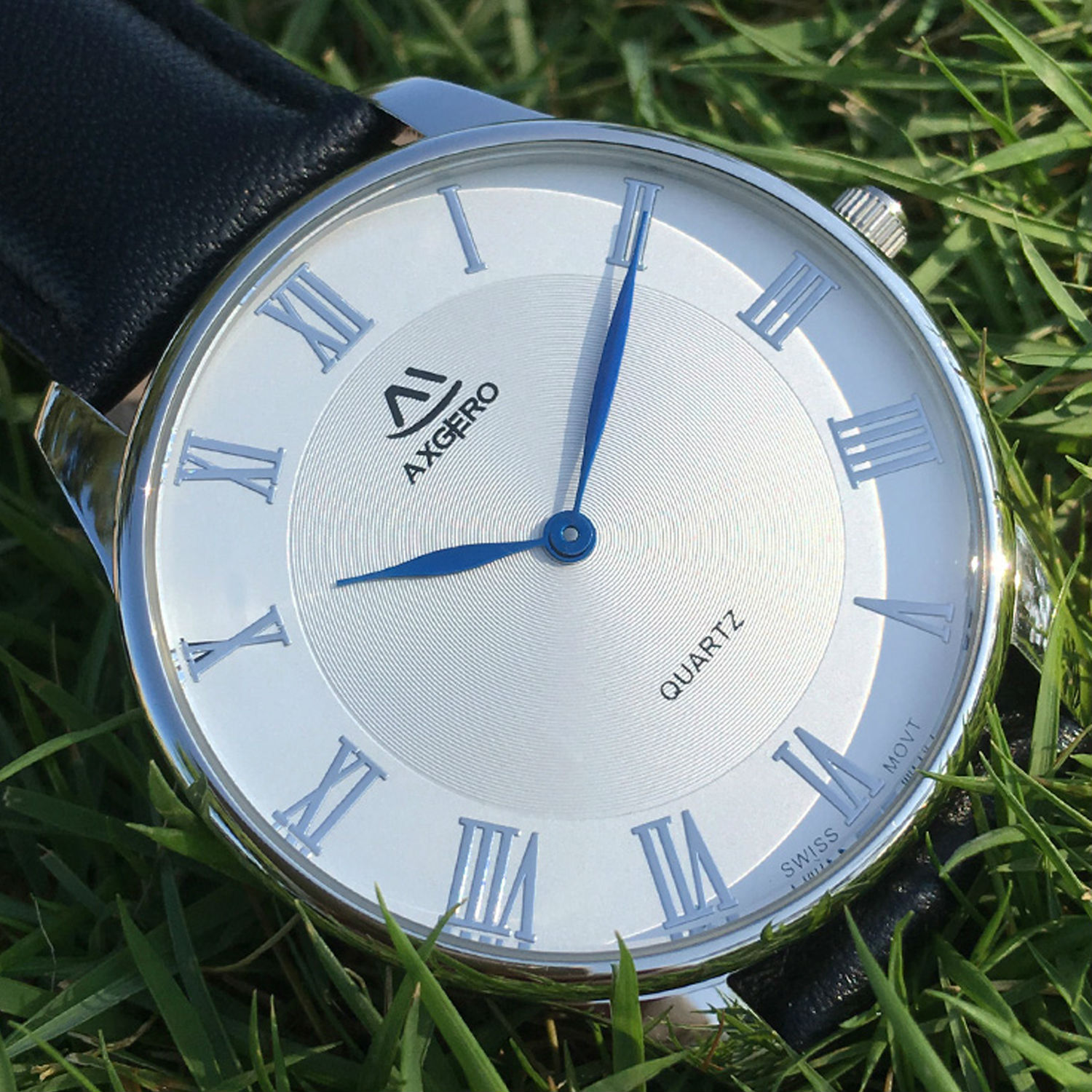 2016 Stainless Steel Case Leather Strap Mens Watch