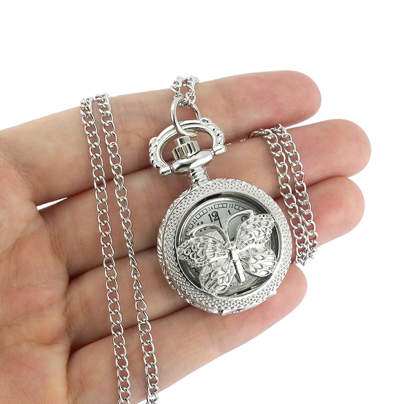 2021 New desgin engraved hollow butterfly quartz chain wrist pocket watch Reloj de bolsillo