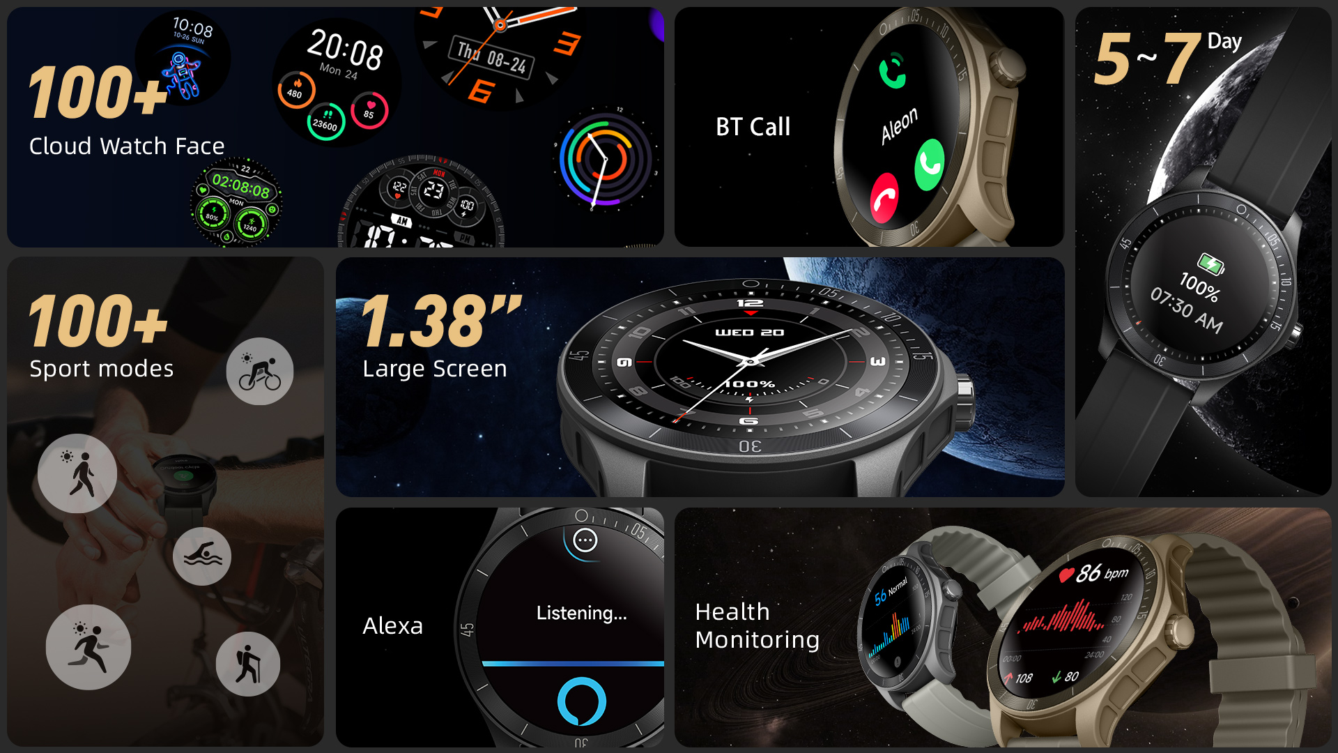 1.Bluetooth calling, Alexa,Potentiometer crown
