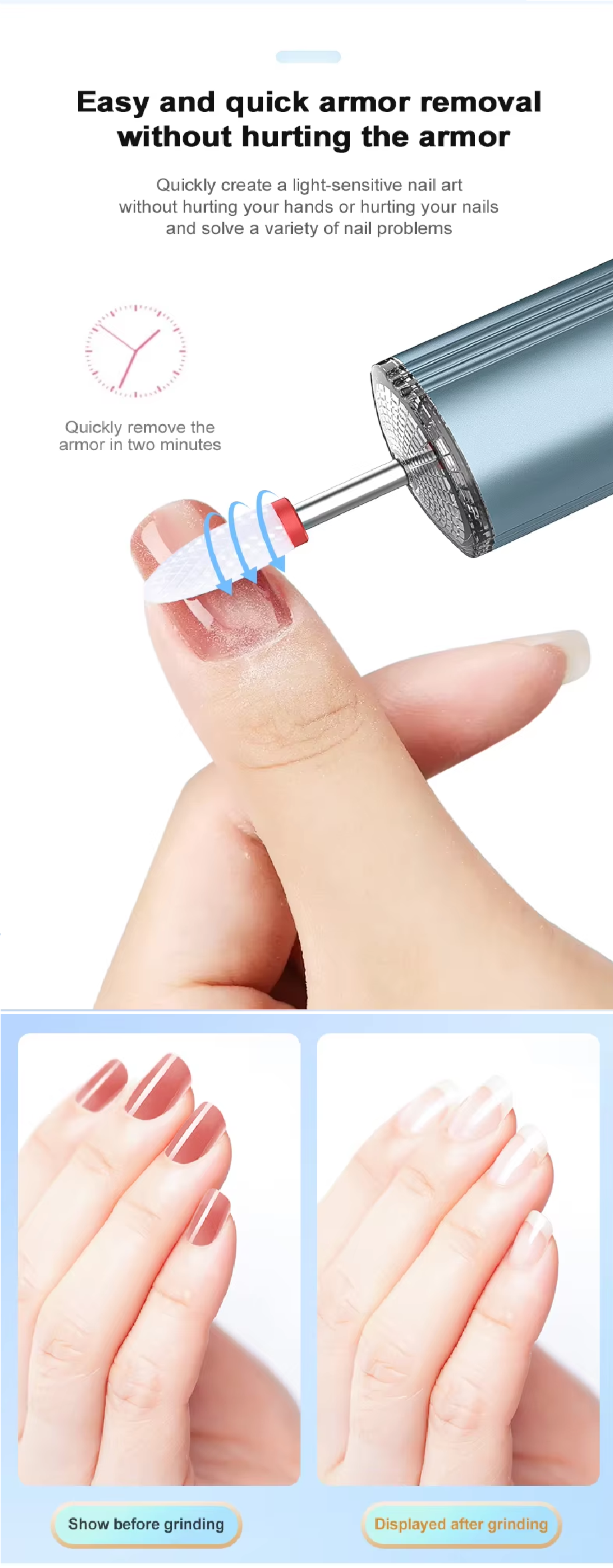 • Lightweight and portable, making it easy to carry around for nail care with comfortable grip