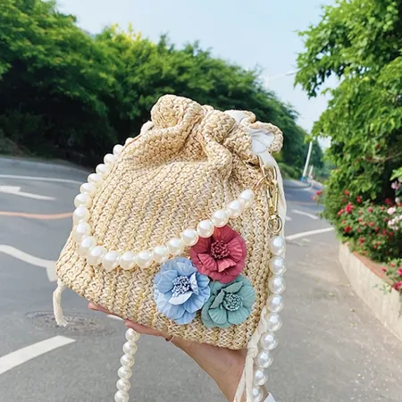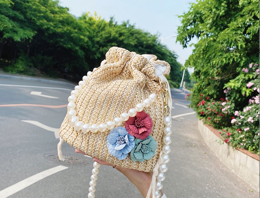 2025 new straw woven summer beach garden style handbag Pearl chain small daisies fashion simple shoulder bag