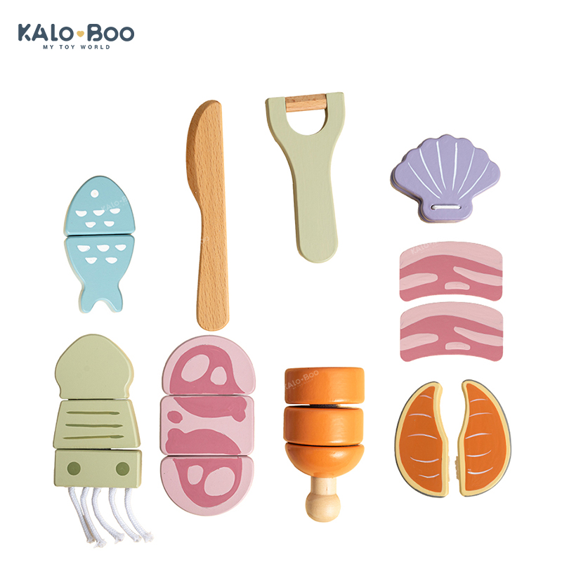 2026 Montessori Preschool Cutting Food Shape Pretend Play Set Simulated Wooden Kitchen Food Toys for Kids