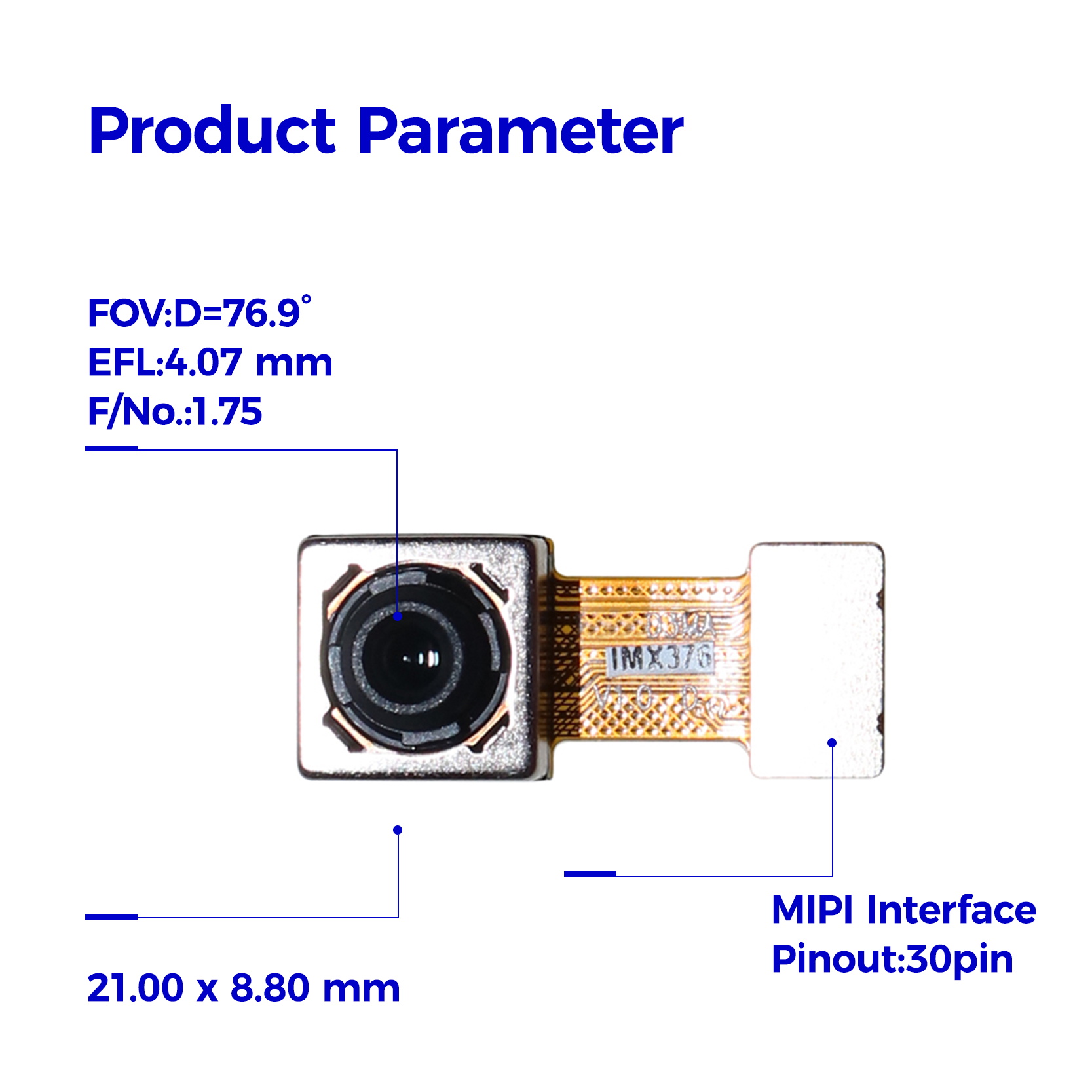 HAMPO-D3MA-IMX376 is a diagonal 6.475 mm (Type 1/2.78) 20 Mega-pixel CMOS active pixel type Mipi camera module with a square pixel array. It adopts Exmor RS™ technology to achieve high speed image capturing by column parallel A/D