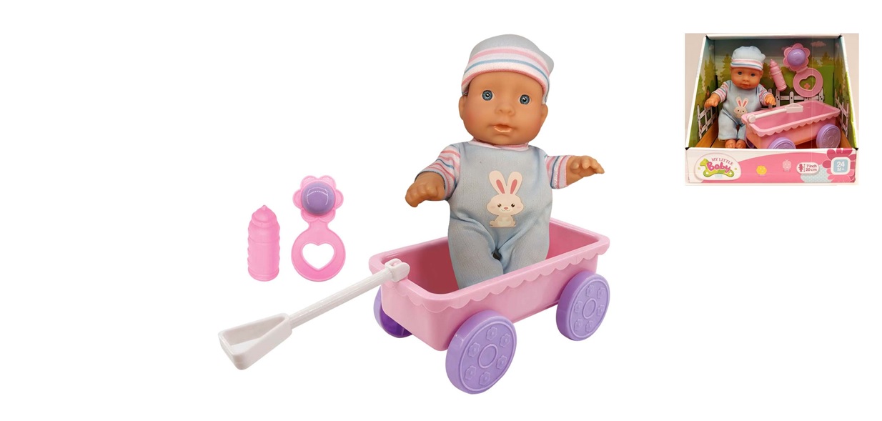 20cm Hard Body Doll with Wagon