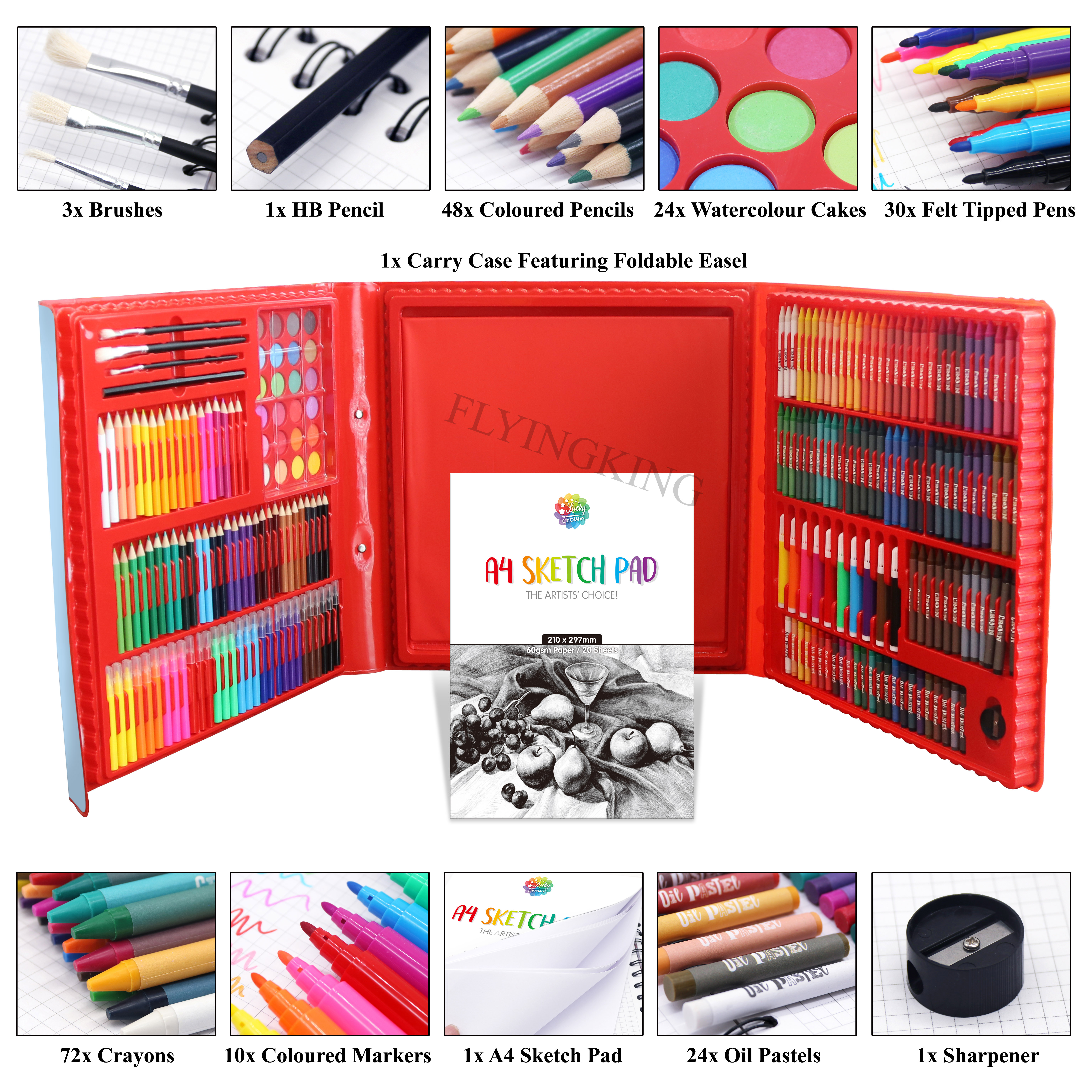 This great art set includes all types of coloring and drawing materials for artists of all ages - especially for any child who loves to doodle or wants to inspire and enjoy the joy of painting. Multiple tools equipped to meet all your drawing needs. Bright and colorful to inspire kids creative side.
