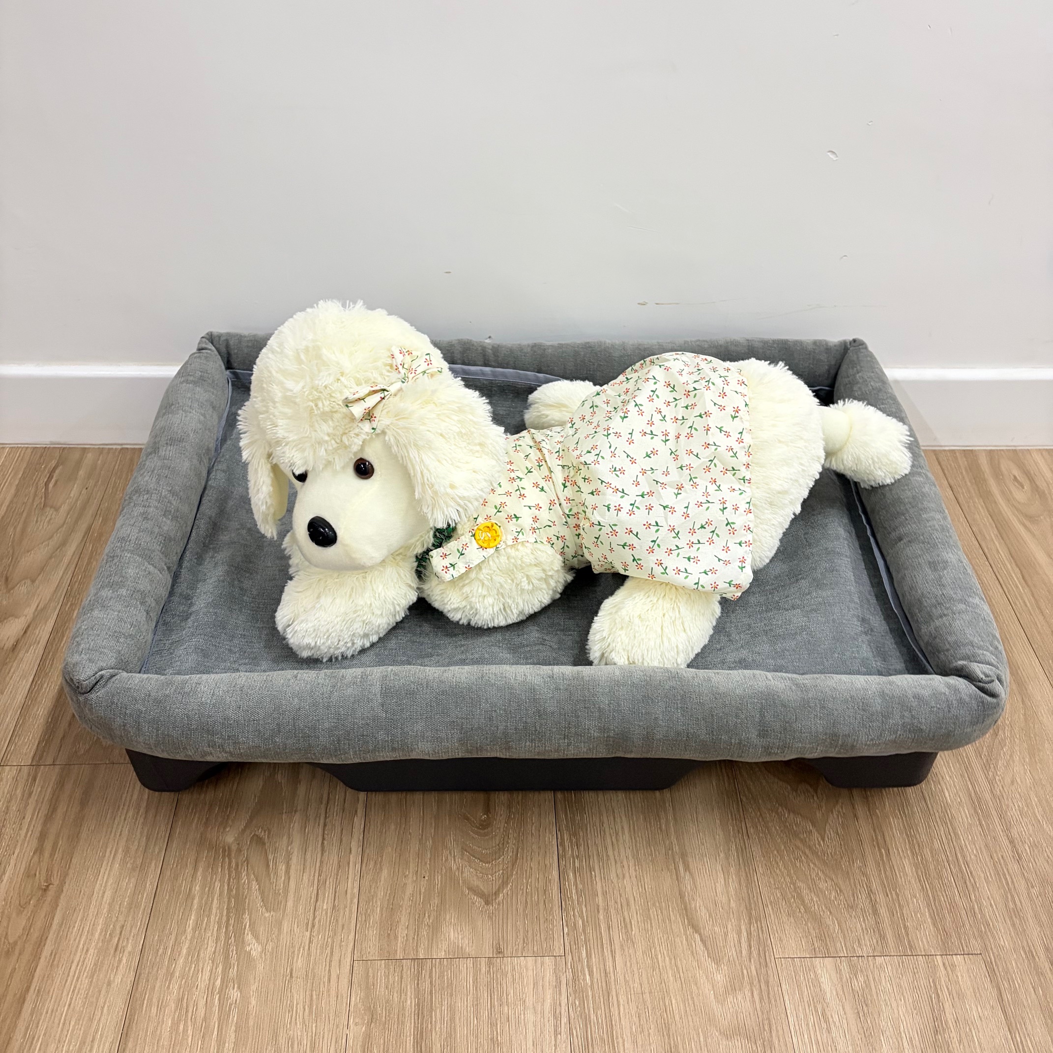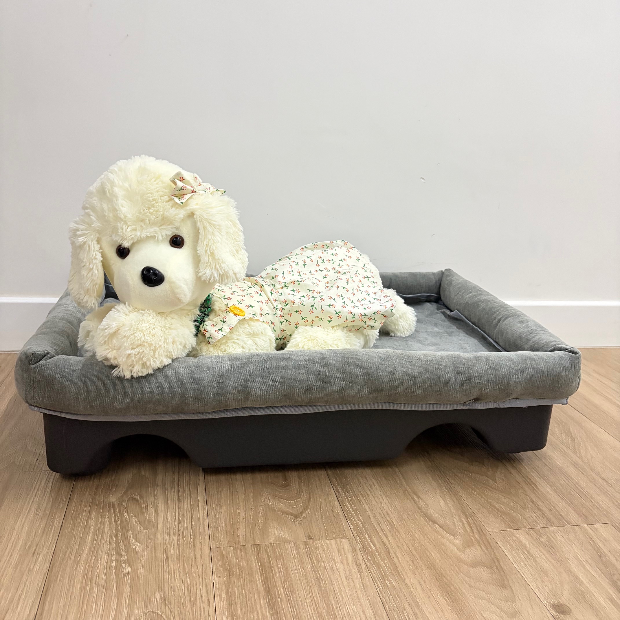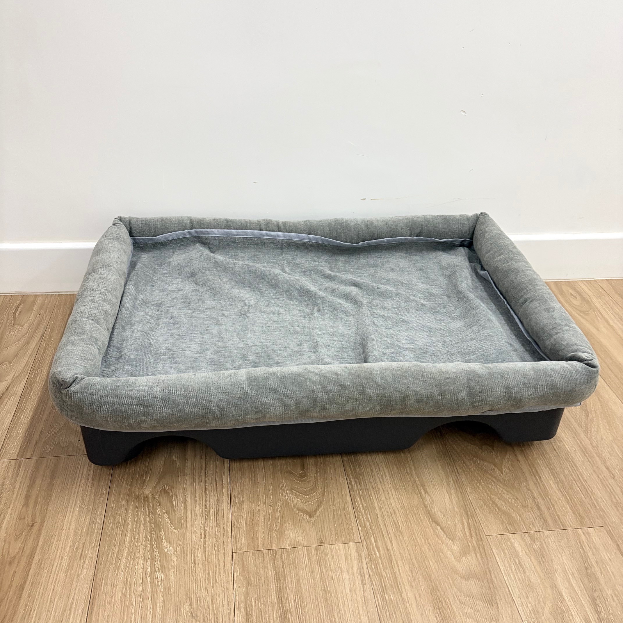 Size can sit on top of the pet bed easily