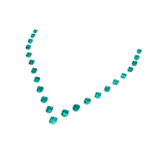 This set of Colombian emeralds is beautiful beyond measure. The brilliant stones with their distinctive turquoise shimmer will awe any spectator. This amazing set is great for fine jewelry crafts.