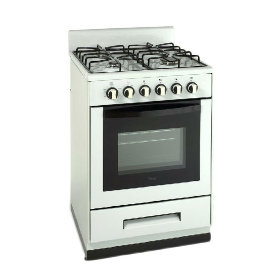 This free-standing gas range comes with an oven and four burners on top. Operation is exceptionally simple with the six knobs. The all-white finish can nicely match the modern décor of your kitchen.