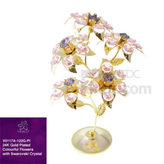 24K Gold Plated Colourful Flowers with Swarovski Crystal