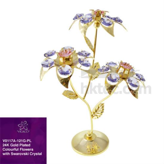 24K Gold Plated Colourful Flowers with Swarovski Crystal