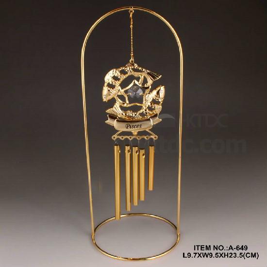 24K Gold Plated Metal Pisces Zodiac Windchime with Swarovski Crystal