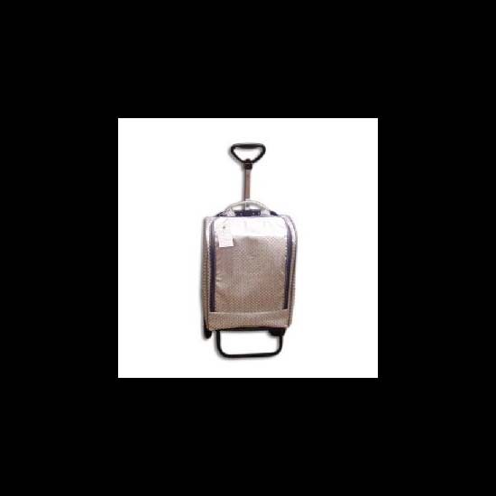 - Its sleek, silvery fabric covering gives this suitcase a futuristic feel