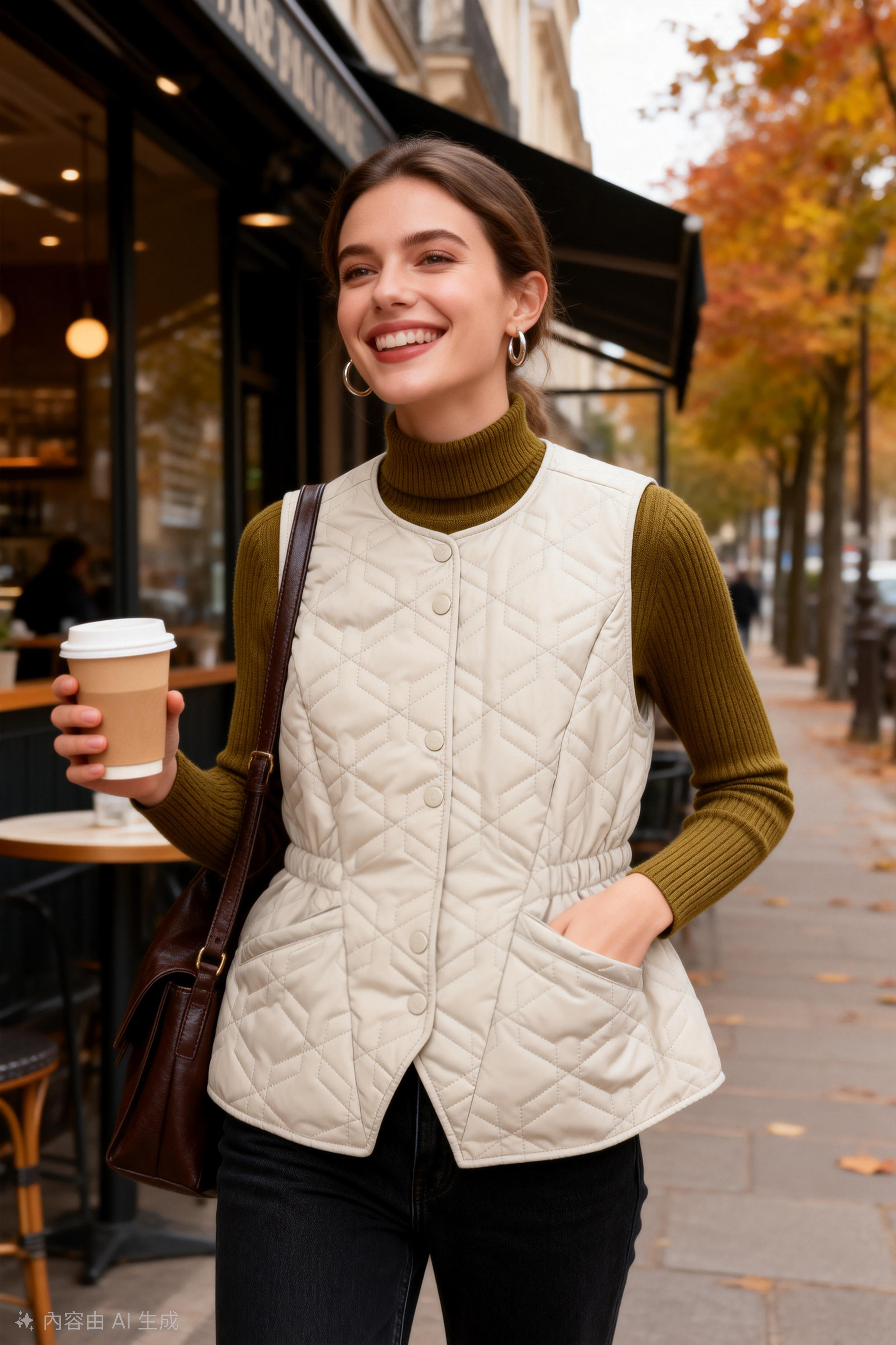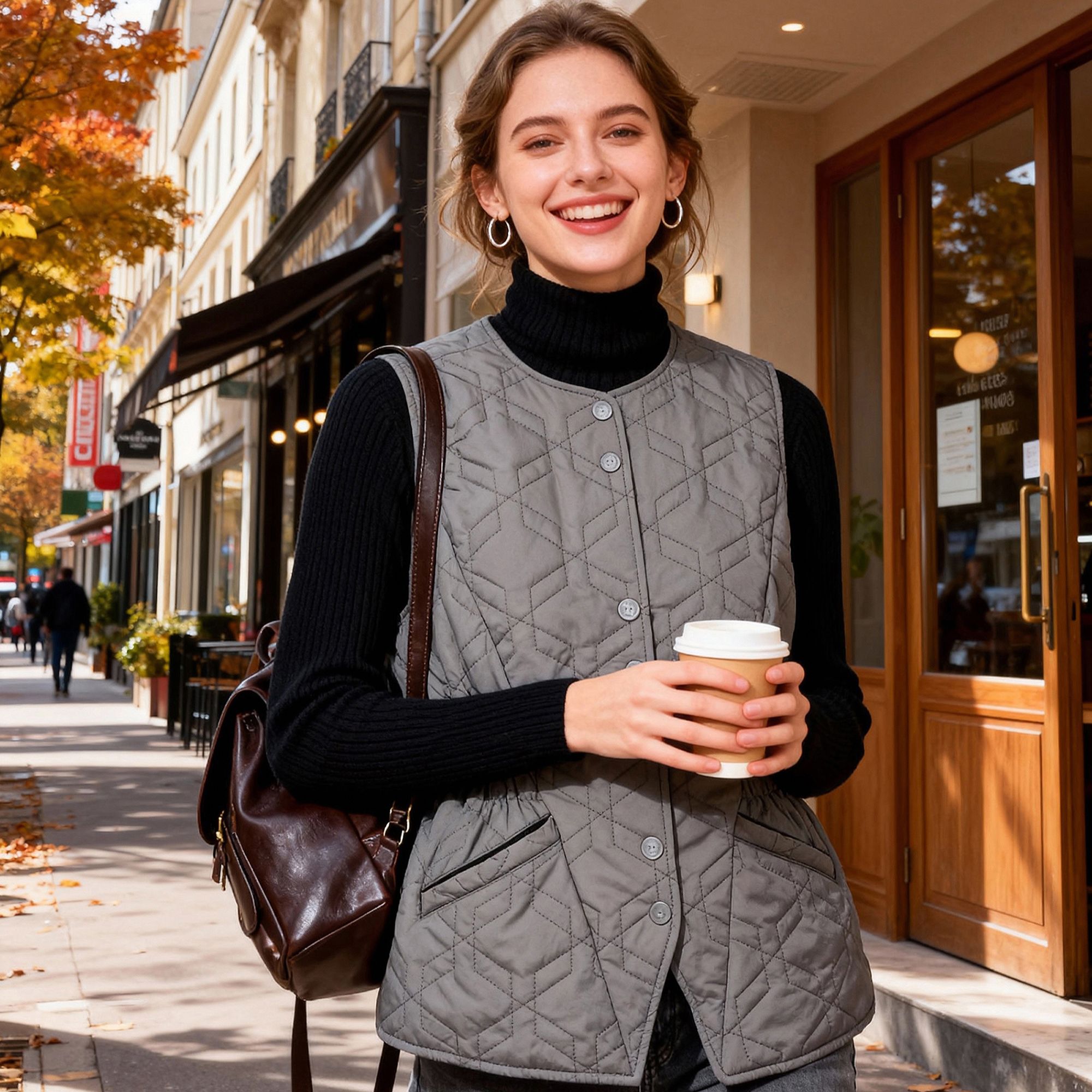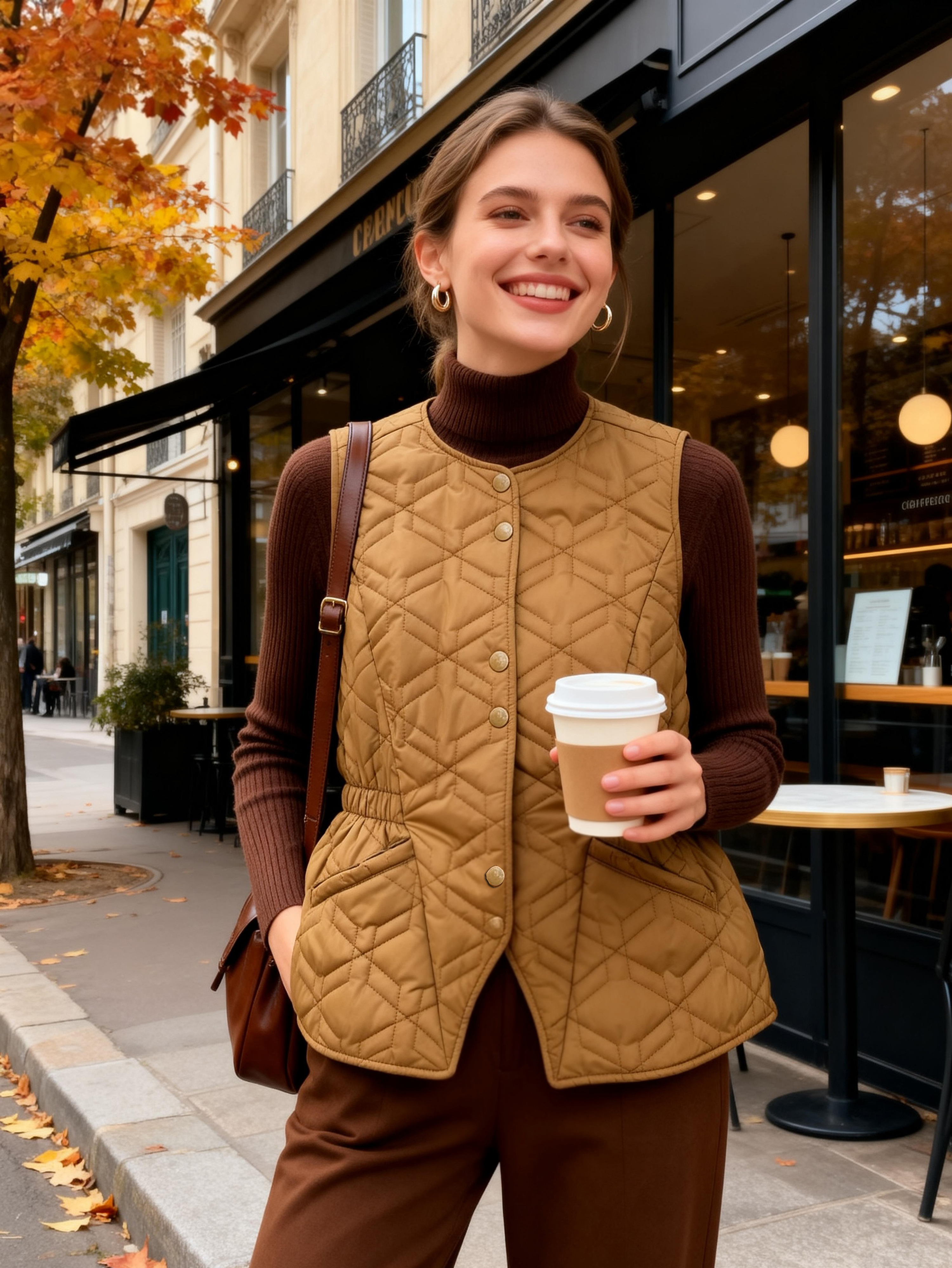 East Pole Ladies Diamond-Quilted Padding Waist-Cinched Vest