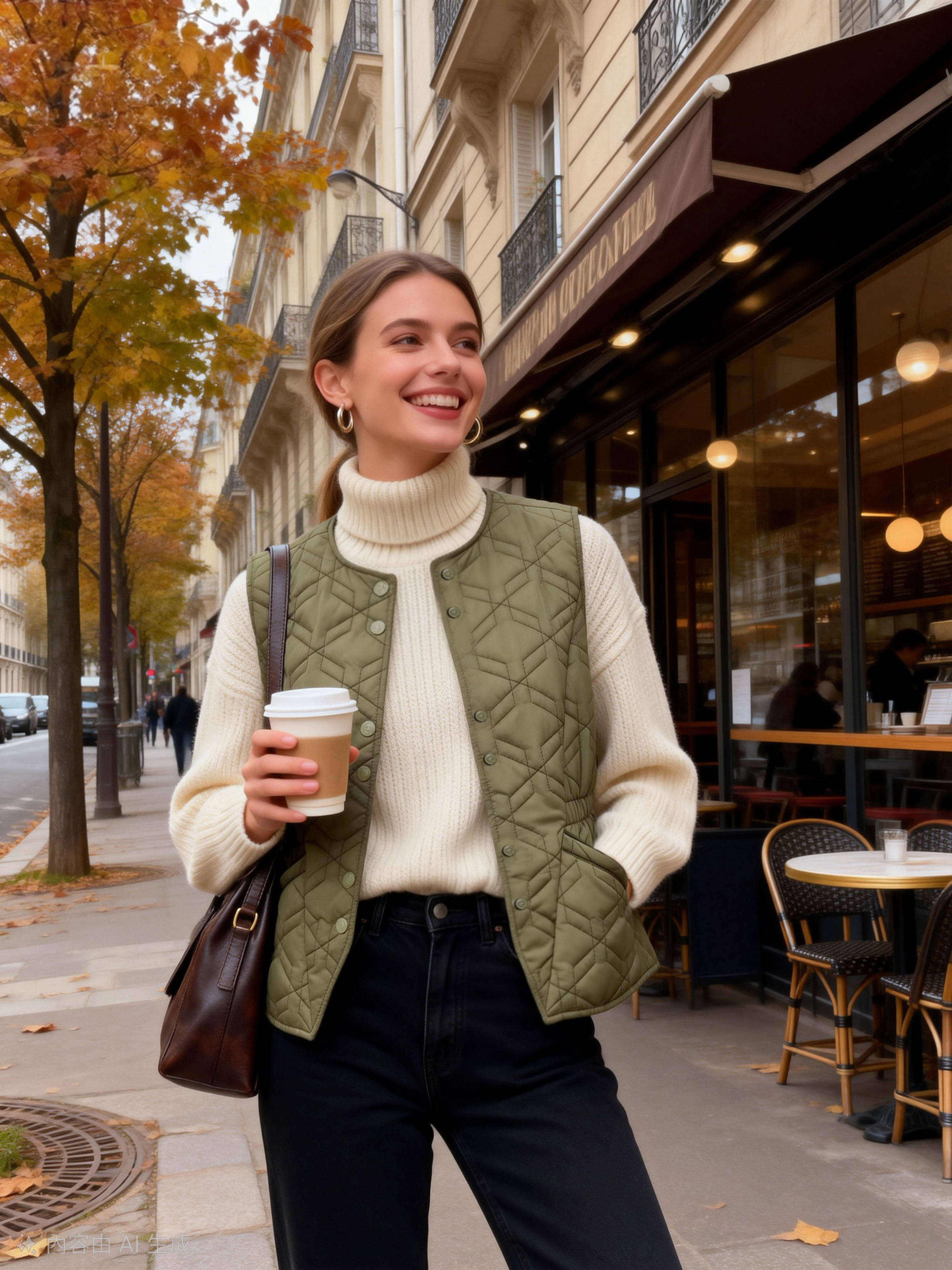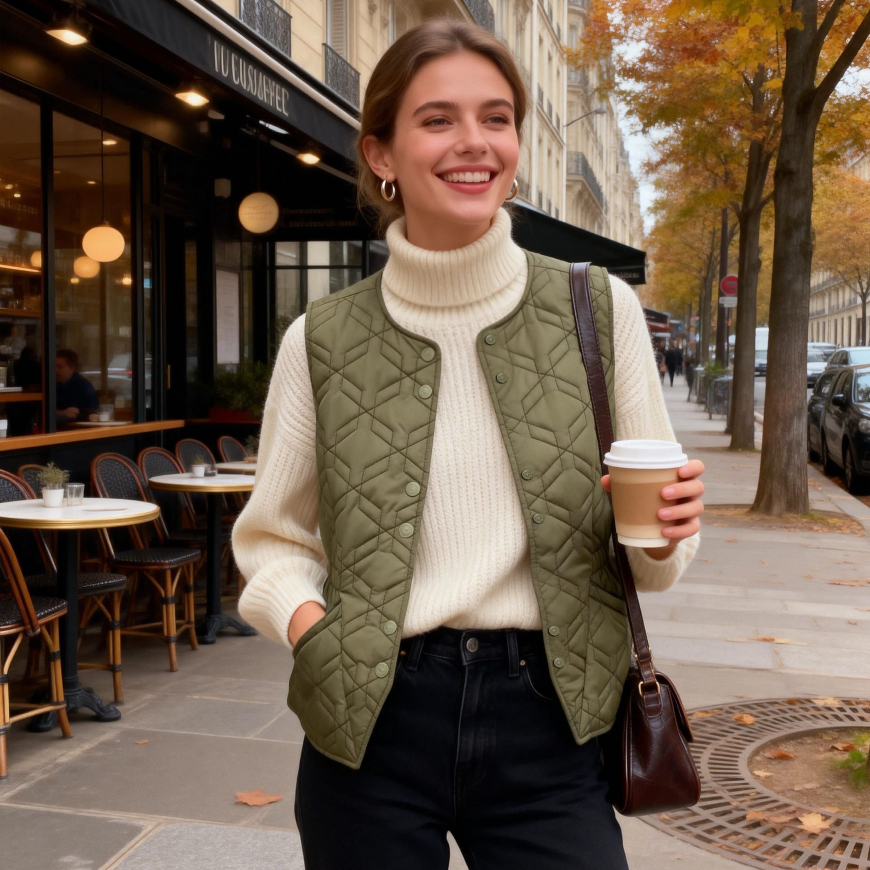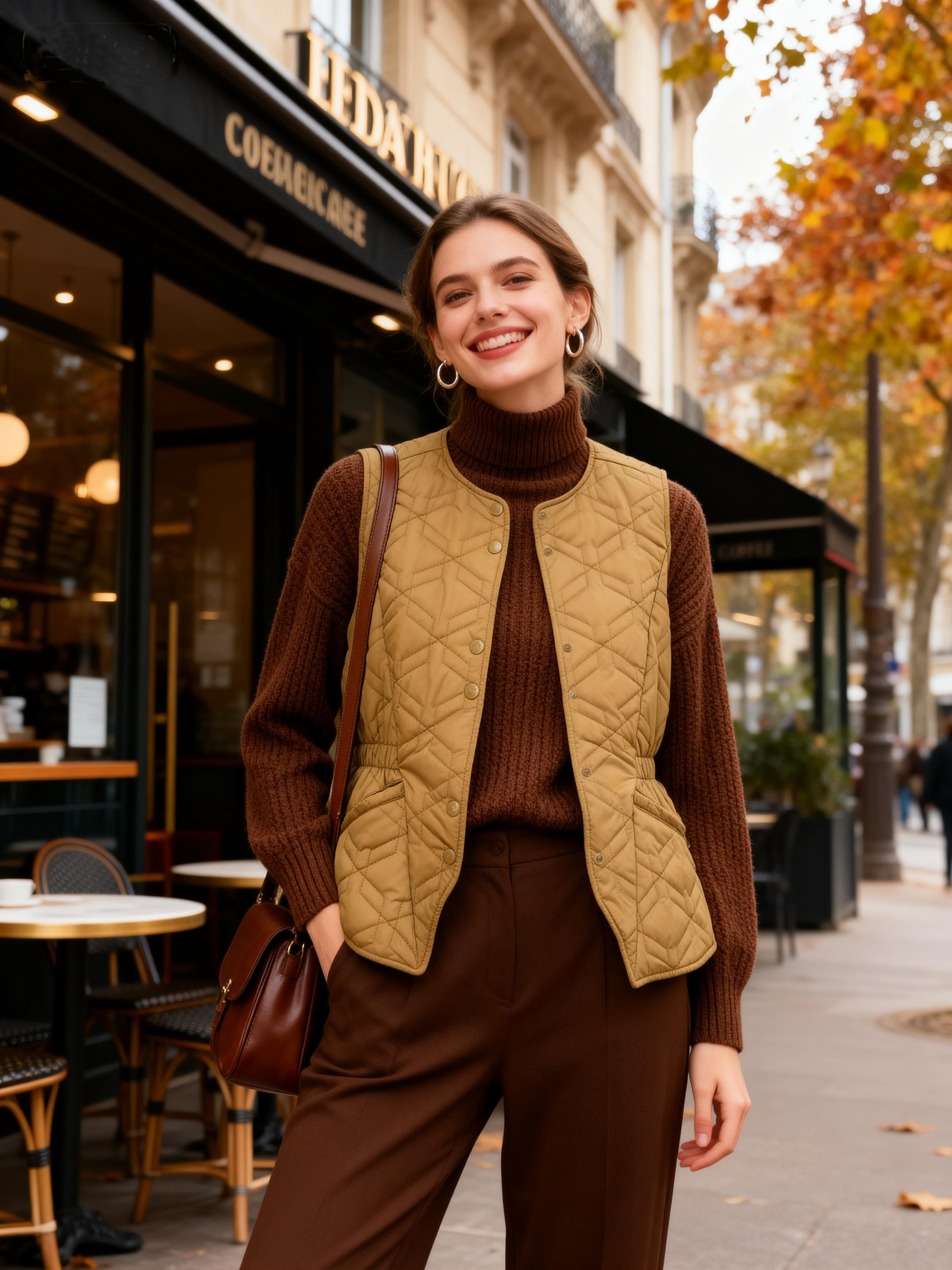 East Pole Ladies Diamond-Quilted Padding Waist-Cinched Vest