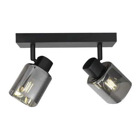 2Lt Spot Light Bar, Material:Metal+Glass , Bulb:2x E14 Max.40W, Product Size:L260*W90*H135mm, Colour:matt black+smoke glass, Packing:white box+colour label