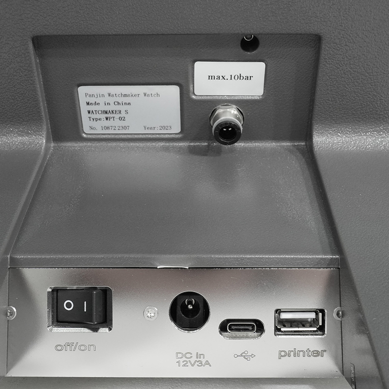 Fully automatic measurement, with multiple test programs, capable of detecting watch leaks through leak testing, requires an air compressor, equipped with a built-in printing system