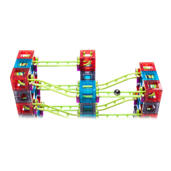 Qvolutiuon is a new 3-dimensional teaching aid that enhances children's brain development and creativity. Qvolution lets children connect the cubes and rails, and then take them apart freely, using strong embedded magnets to design various forms of 3-dimensional structures. Children have hours of fun rolling the marbles through the structures they have built.