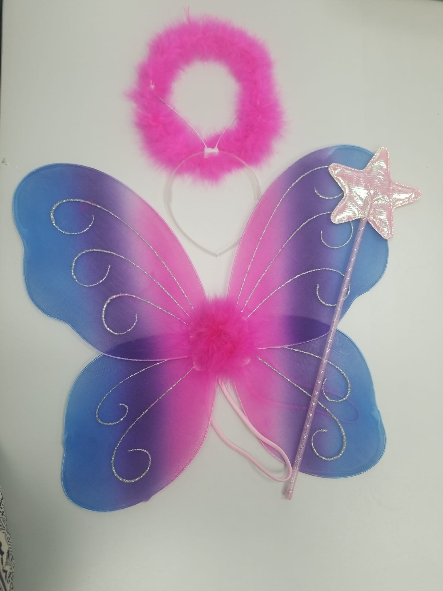 The butterfly wing suit includes wings,magic wand and headband,the wing suit is well-made,not easily deformed or broken,and is cute and durable.