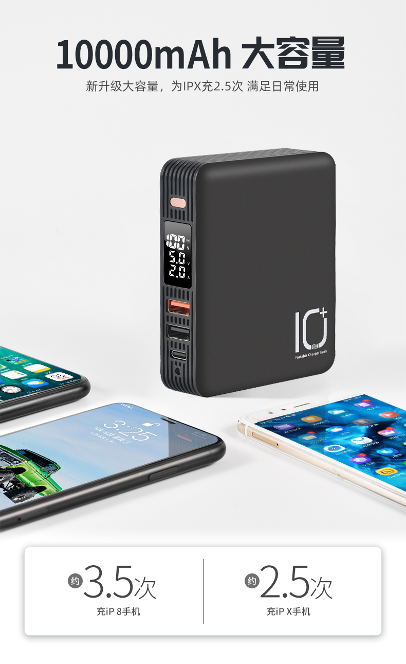 Portable travel power bank easy charging your electronic products.