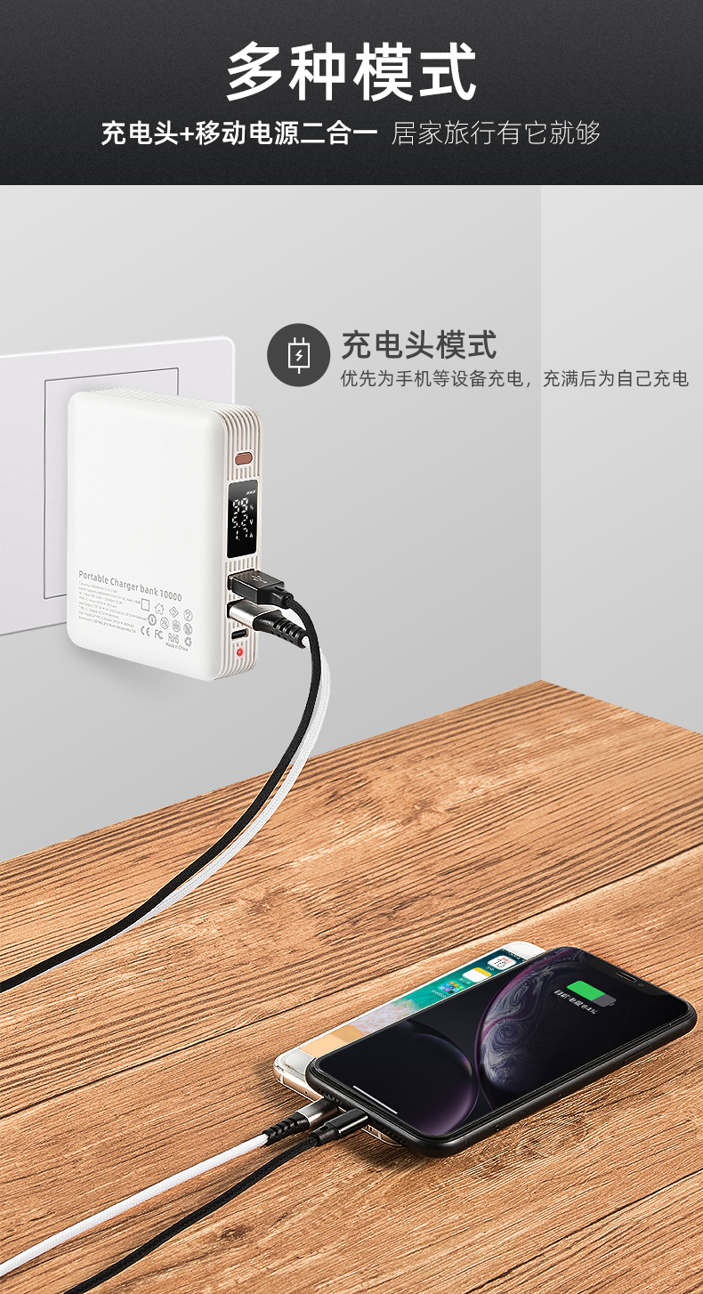 3-in-1 Wireless charging 1A + wall charger + power bank10000mAh
