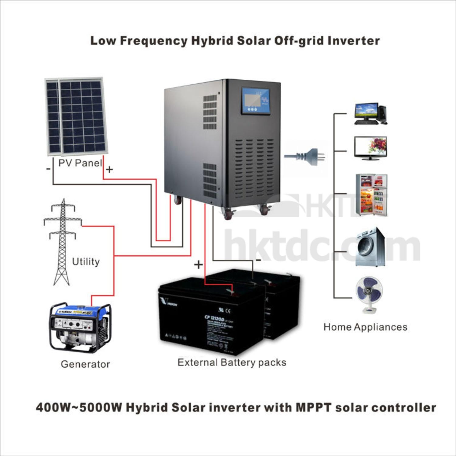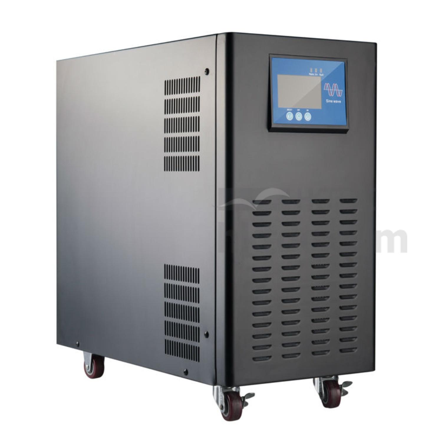 SIM series single-phase off-grid inverter consist of 3 functional modules: solar controller, pure sine wave inverter and insolated transformer. The controller adapts MPPT technology and intelligent battery management design which is very efficient and smart; integrated pure sine wave inverter and low frequency isolated transformer makes it with excellent overload performance, suitable for a variety of electrical appliances. It supports mains/generator input, take advantages of old diesel generators, saving initial investment and operation maintenance cost.