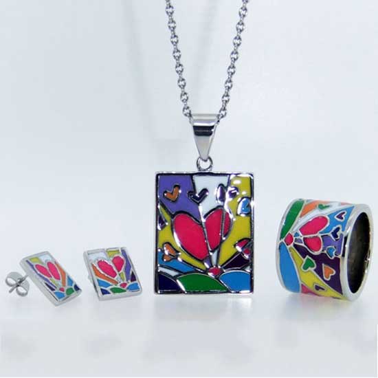 Presented to you is a set of jewelry made of 316L stainless steel. The stainless steel jewelry set comes with a pendant, a ring and a pair of earrings with detailed craftsmanship. The jewelry pieces can be mix and match easily.