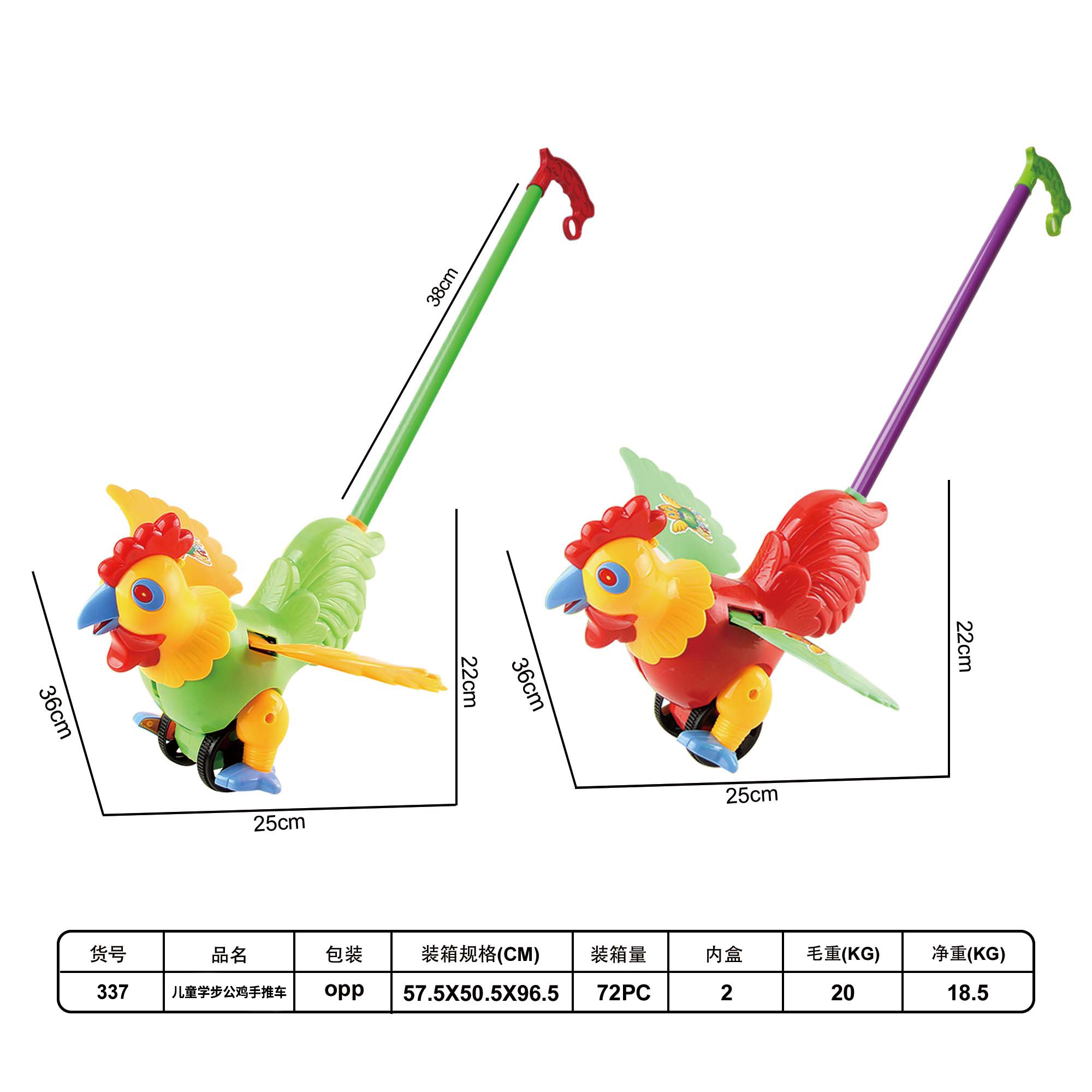 337 CHILDREN'S WALKING ROOSTER PUSH CART