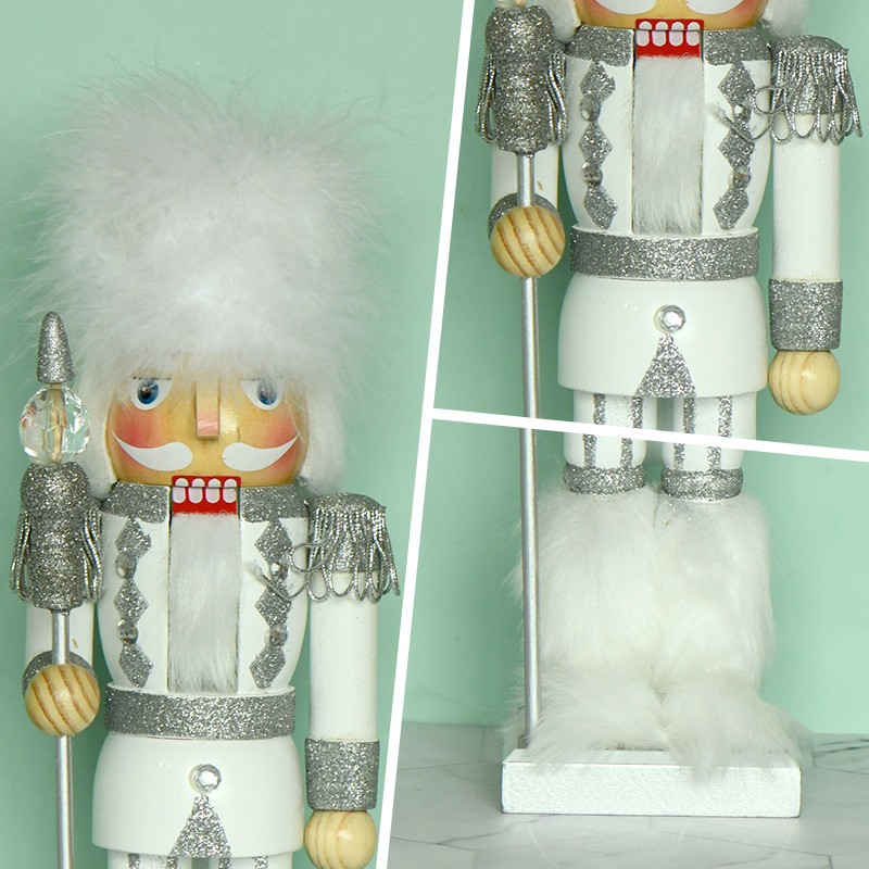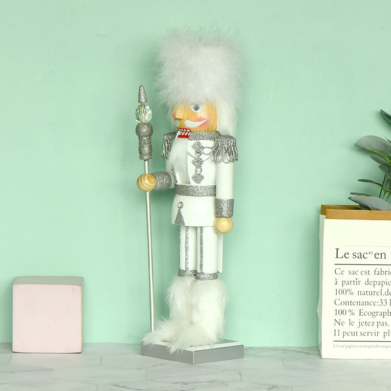 35CM蓬蓬头白色国王胡桃夹子木质装饰工艺品家居圣诞摆件