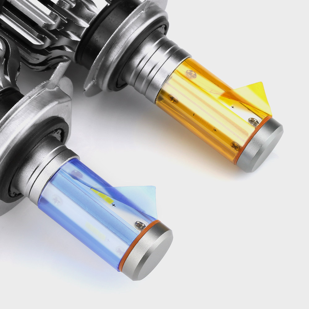 Wholesale 4 sides cob chip 360 degree shinning led car headlight with three colors