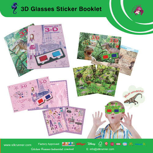 3D glasses playing set is let the kids play and fun we can have activity book include the tattoo and stickers for the kids play and learn the wordings or animals name, for more information please contact us.