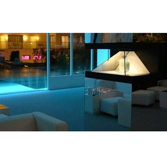 The 3D holographic display provides a powerful way to showcase your product. It is a mixed-reality display designed to present products or artifacts in combination with free floating holographic video elements. Due to its stunning visual effect, it quickly becomes center of attention in any retail shop or exhibition, creating that all important foot traffic and brand awareness.