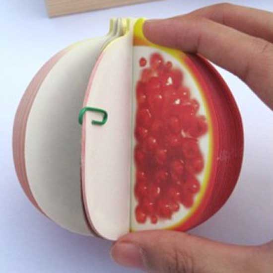 This 3D memo pad features a pomegranate shape design. The memo pad showcases brilliant CMYK printing on each sheet and cover. It makes a stylish and functional addition to your office desk.
