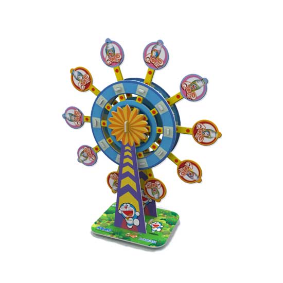 Showcased is a 3D puzzle set with a Ferris wheel design in vibrant colors. It is made of paper and polystyrene foam. The eye-catching appearance makes it stand out from the rest.