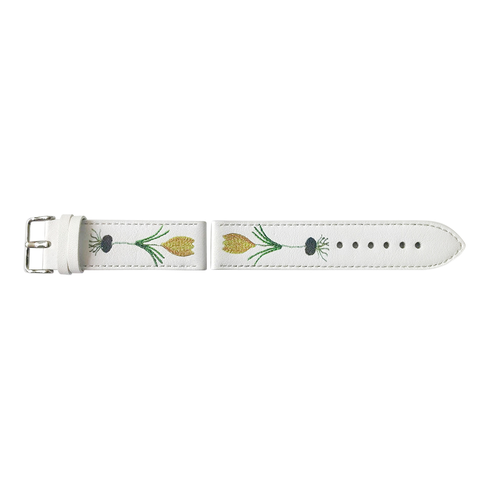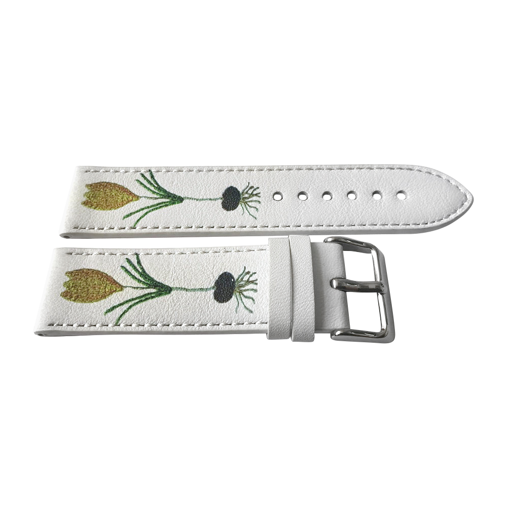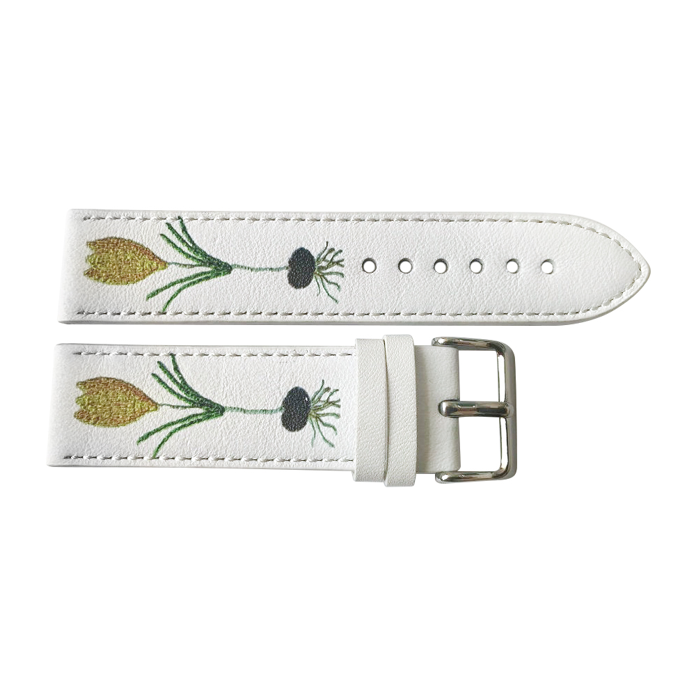 Nappa Watch Band with customizable 3D printed design, Cut edge, Flatted, peach end, w/ stitching.